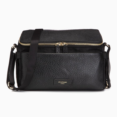 The Storksak Alyssa Stroller Bag is the compact yet cleverly designed changing bag every parent needs. Made from responsibly sourced leather and durable nylon, it features a wide zipped opening for easy access, with plenty of space inside plus a secure pocket for valuables. With built-in patented stroller straps, an insulated sleeve and crossbody strap, it works perfectly as both a stroller organiser and compact changing bag.